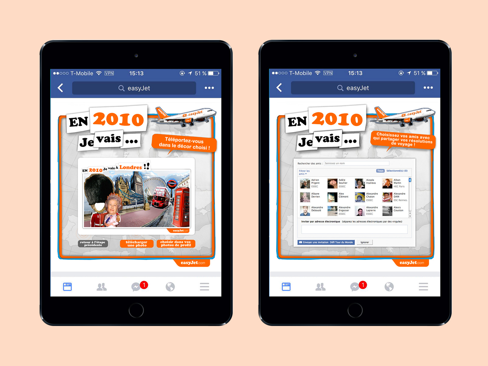 Facebook campaign for Easyjet. Choose your next trip, take a selfie and send personalized virtual postcards to your friends from Facebook.