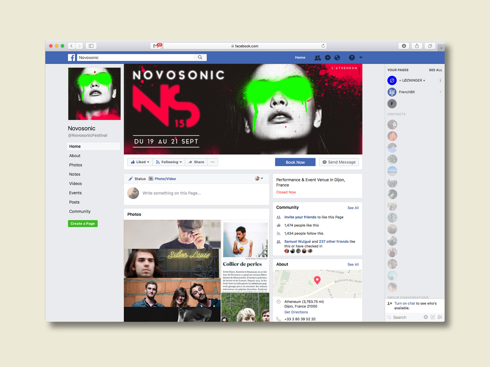 Curating by the University of Burgundy, the Novosonic Festival is a indie music festival taking place in Dijon, France since 2005.
